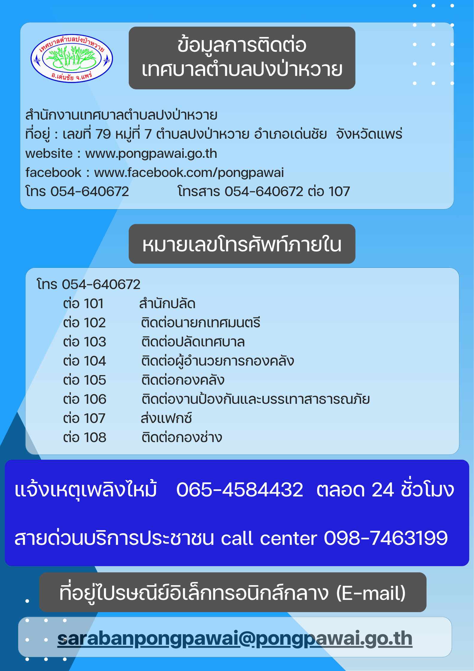 facebook ของเทศบาลตำบลปงป่าหวาย CLICK!
