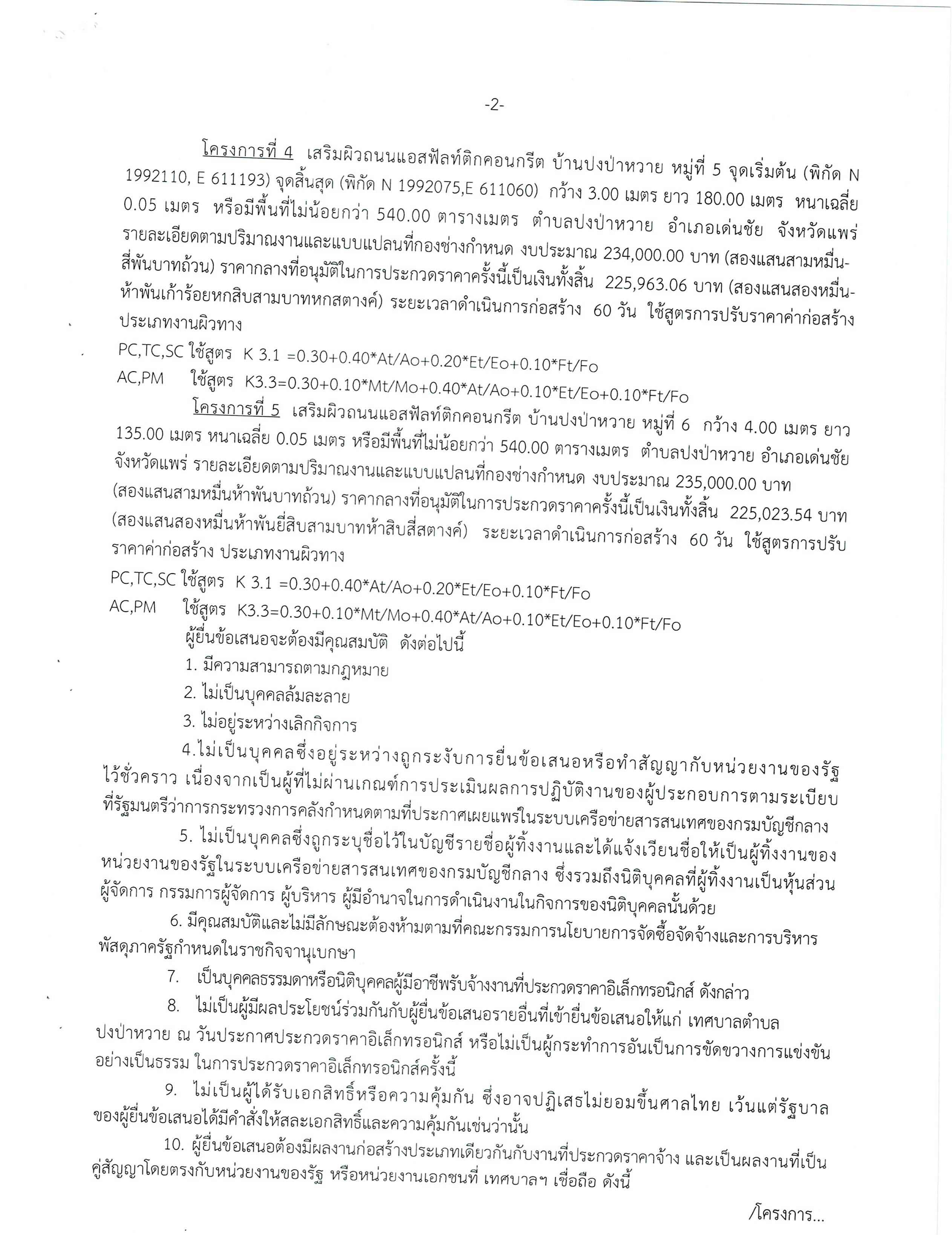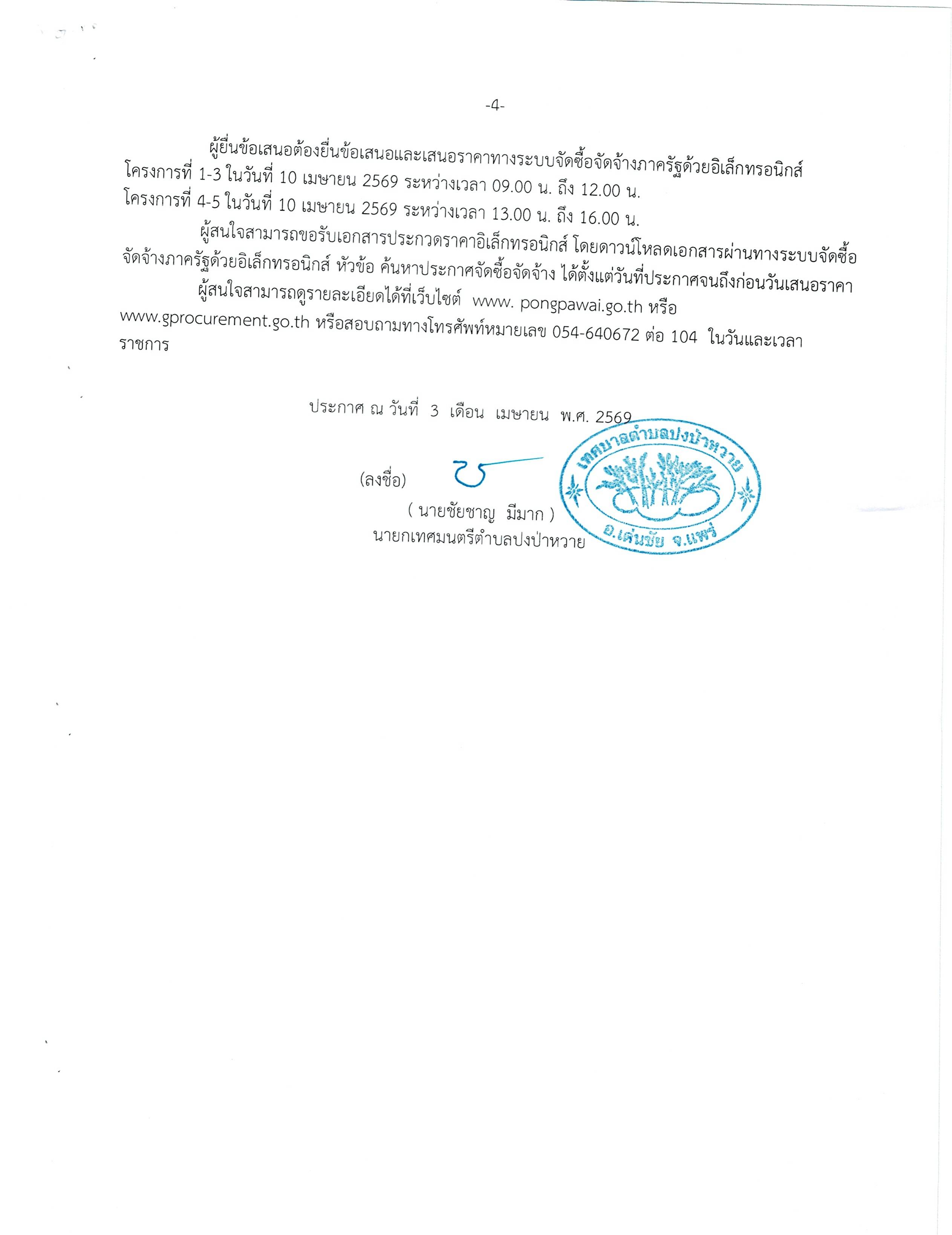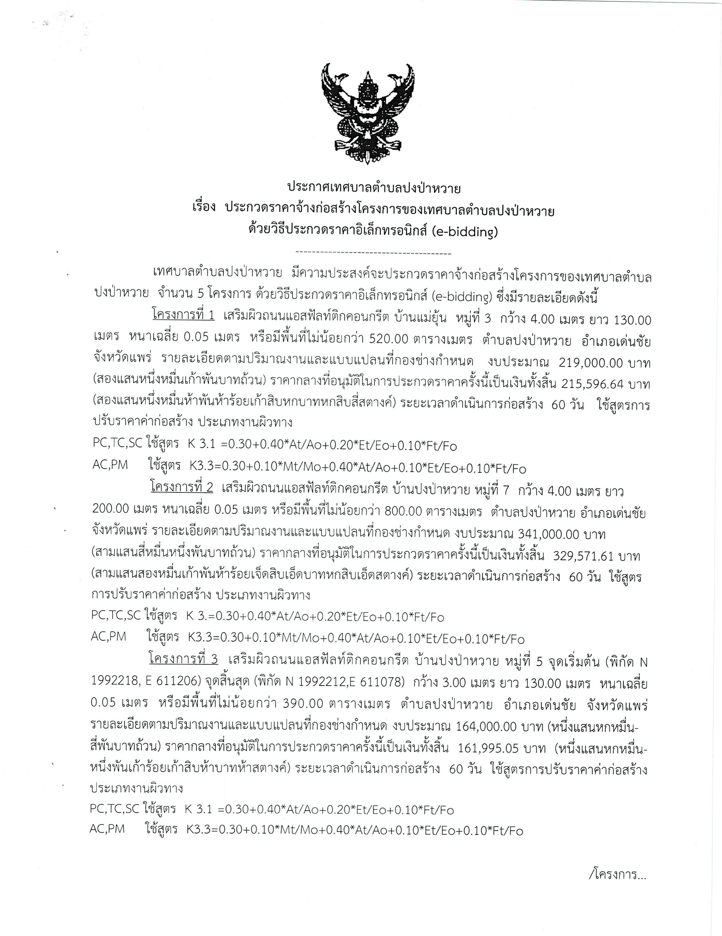 ประกาศเทศบาลตำบลปงป่าหวาย เรื่อง ประกวดราคาจ้างก่อสร้างโครงการของเทศบาลตำบลปงป่าหวาย ด้วยวิธีประกวดราคาอิเล็กทรอนิกส์ (e-bidding)