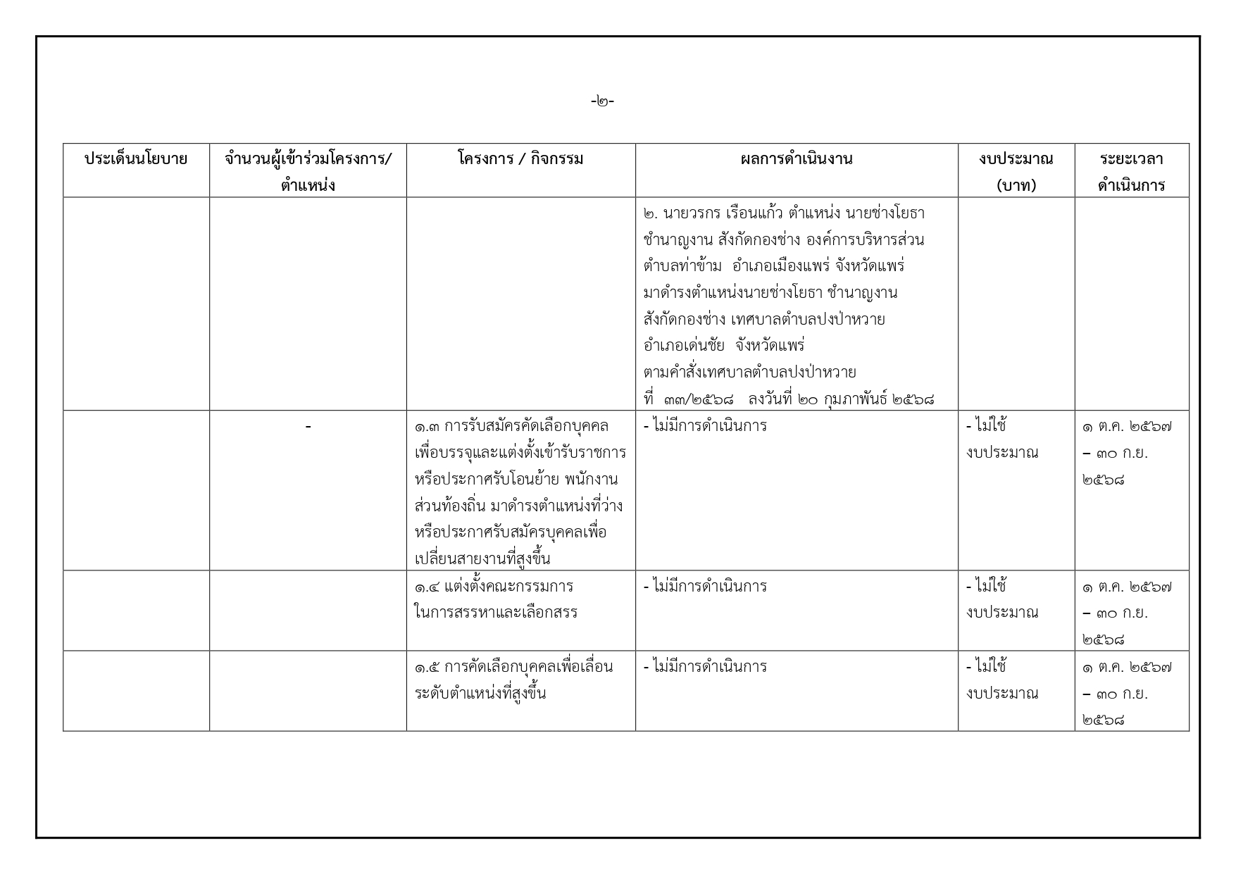 +O26การดำเนินการตามนโยบายการบริหารทรัพยากรบุคคล