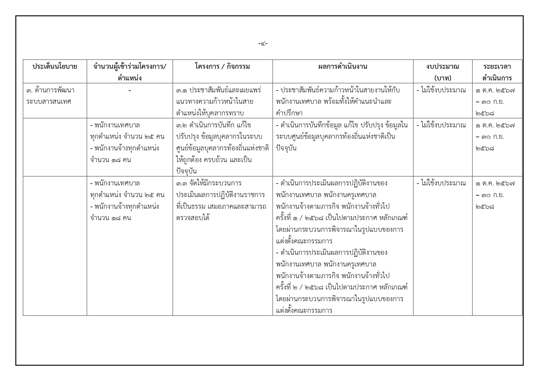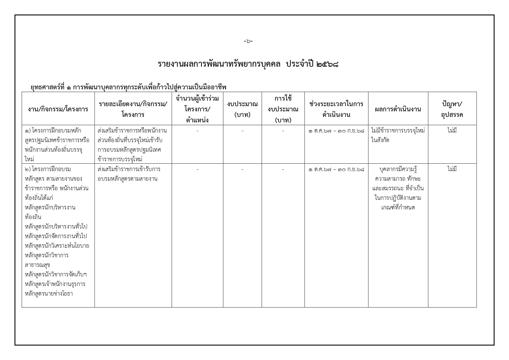 O6 แผนและความก้าวหน้าในการดำเนินงานและการใช้งบประมาณประจำปี
