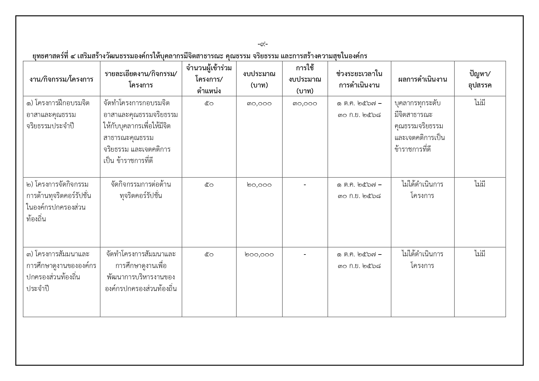 ==O41รายงานผลการดำเนินการป้องกันการทุจริตประจำปี